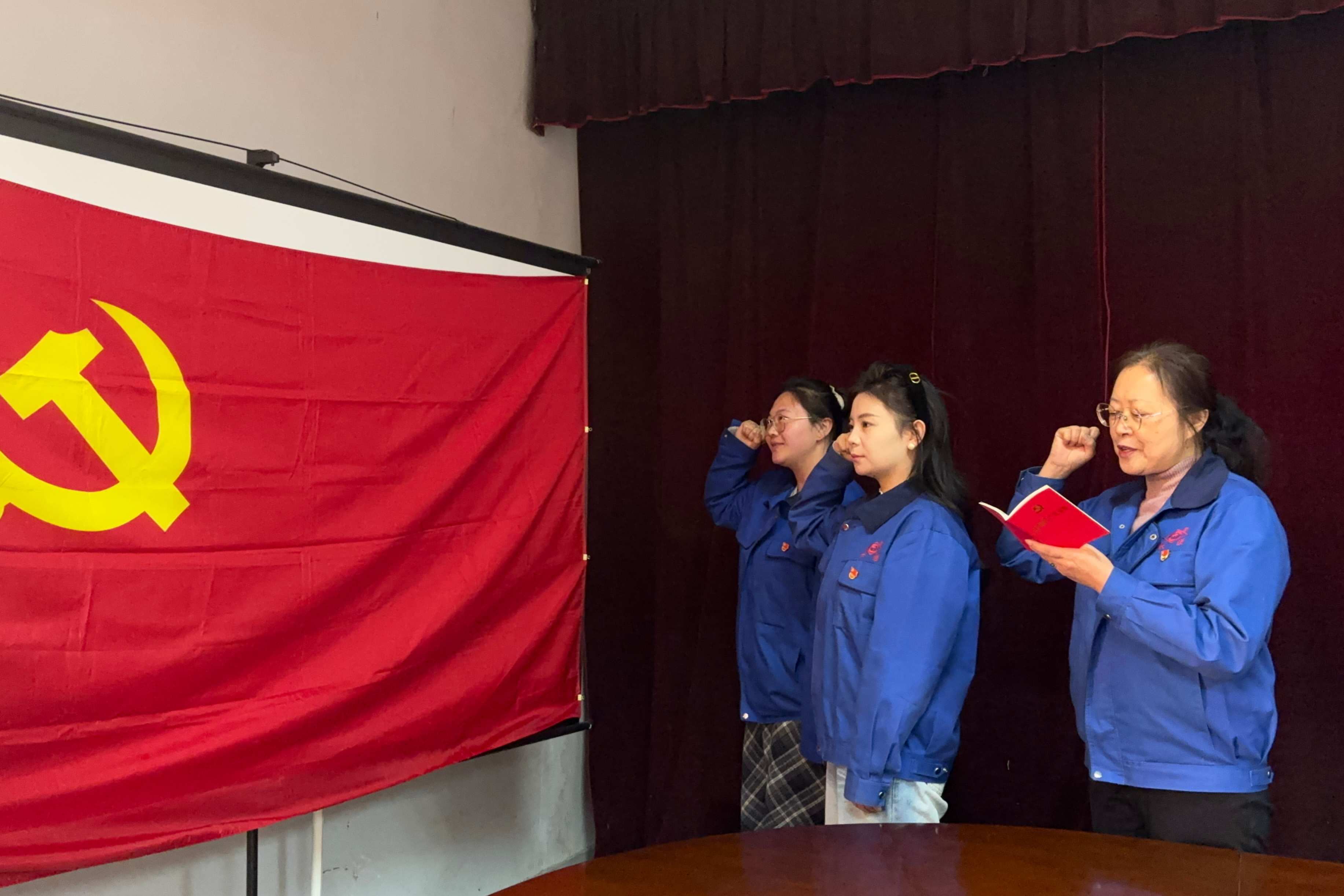 隨后,公司黨委專職副書記王相朝宣讀了《對接收嚴玉蓉、宋萍萍同志為中共預備黨員的審批意見》(長通黨發〔2025〕26號)文件。在莊重的氣氛中,支部委員王曉燕、黃志鴻為兩位預備黨員佩戴上閃亮的黨徽。面對鮮艷的黨旗,在領誓人的帶領下,兩位新黨員進行了莊嚴的入黨宣誓,與會全體黨員一同重溫了入黨誓詞,回望校準了入黨初心。鏗鏘有力的誓言,表達了大家對黨的無限忠誠與為共產主義事業奮斗終身的堅定決心。宣誓完畢后,預備黨員代表作了發言,誠摯表達了加入黨組織的激動心情、對黨的深厚情感以及今后矢志奮斗的堅定信念。